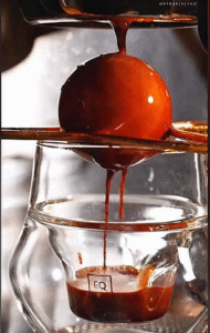 3. Tarik shot espressomu seperti biasa. Biarkan sekitar 40-50% pertama ekstrak mengalir melewati bola beku, lalu singkirkan bolanya.